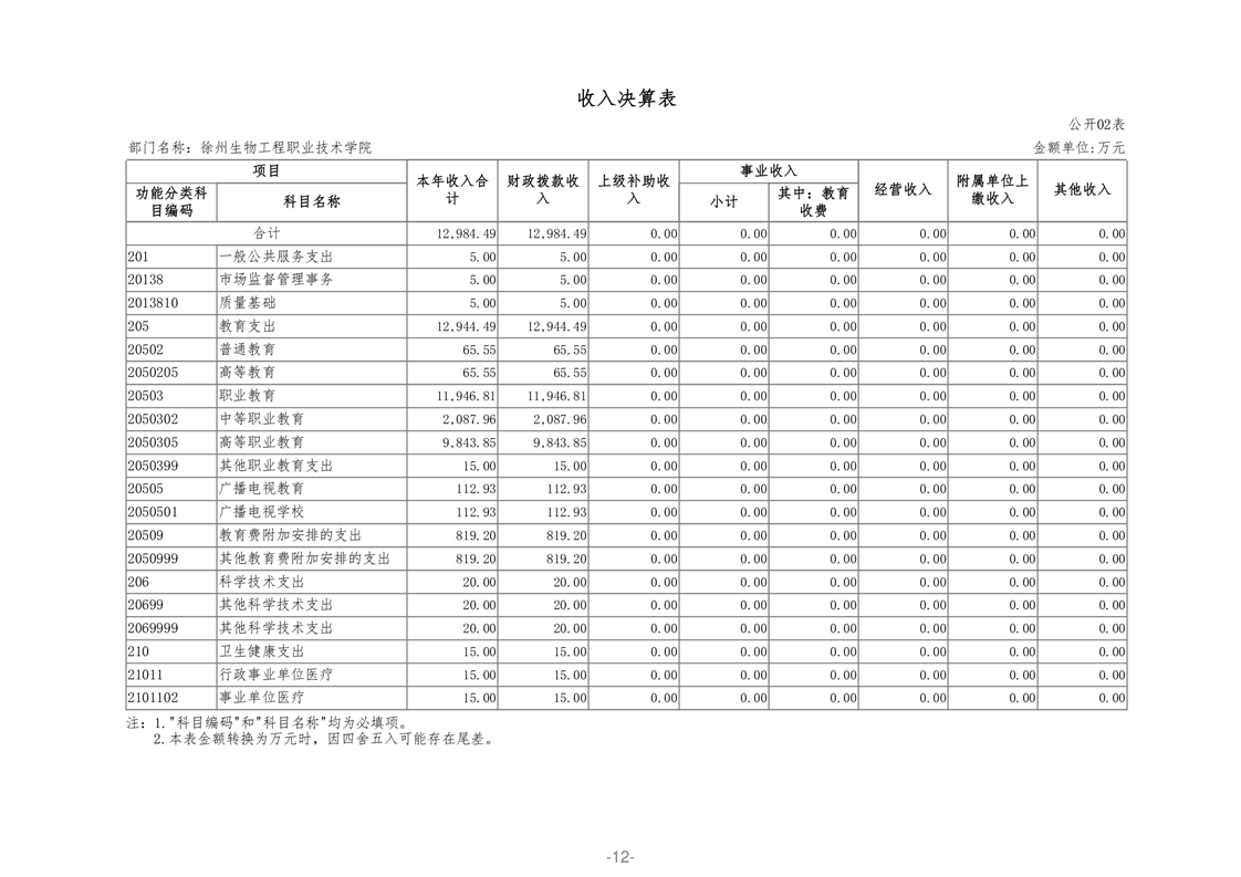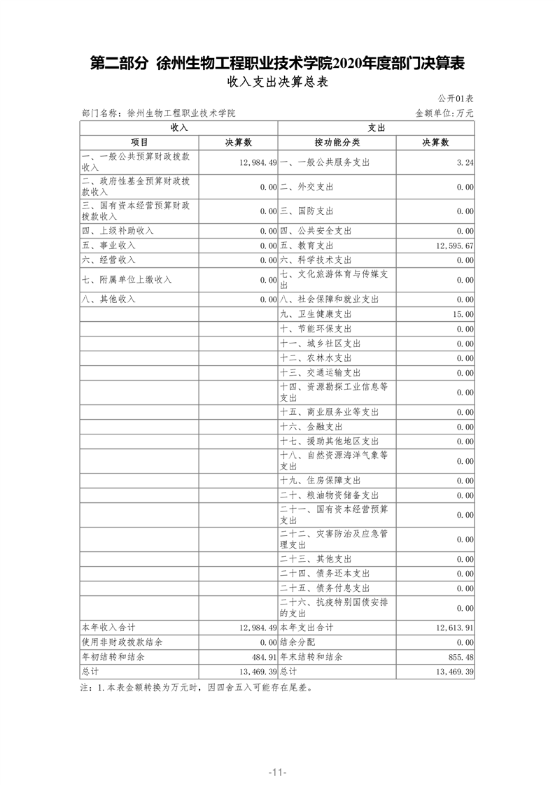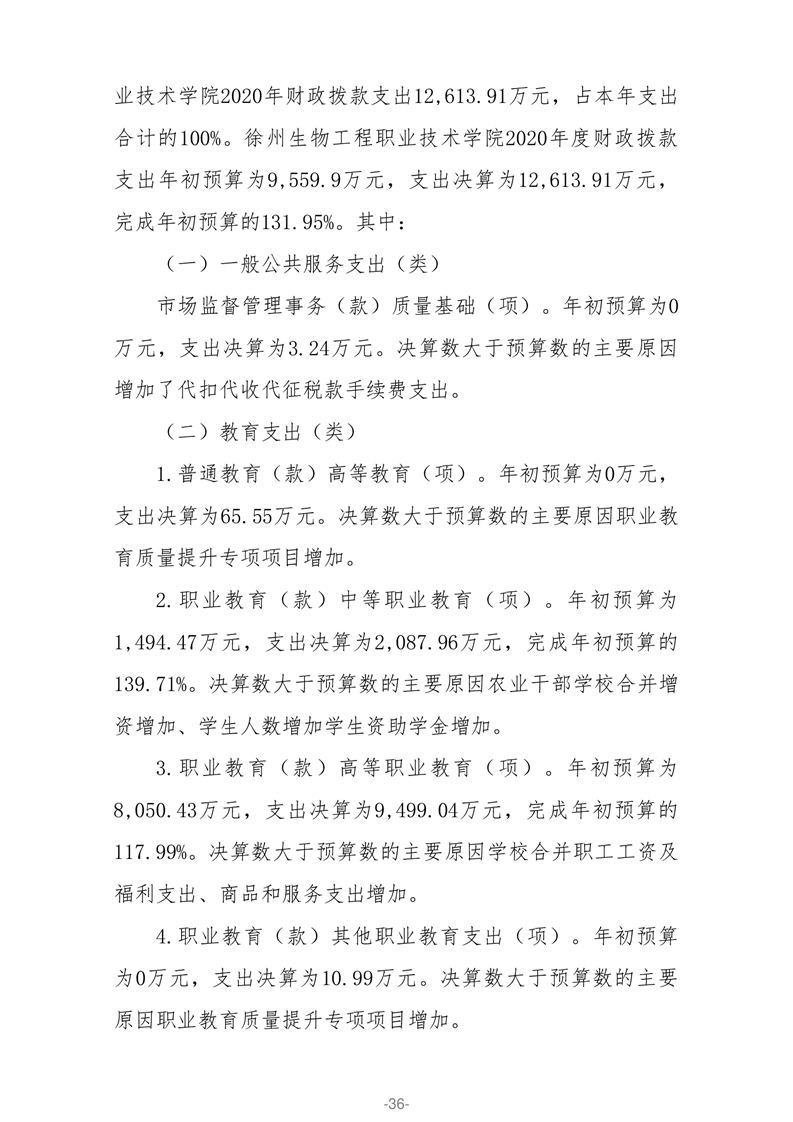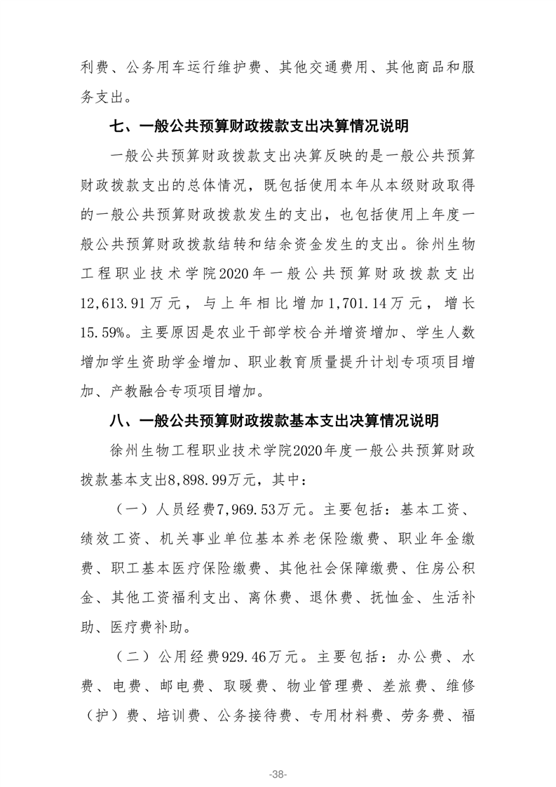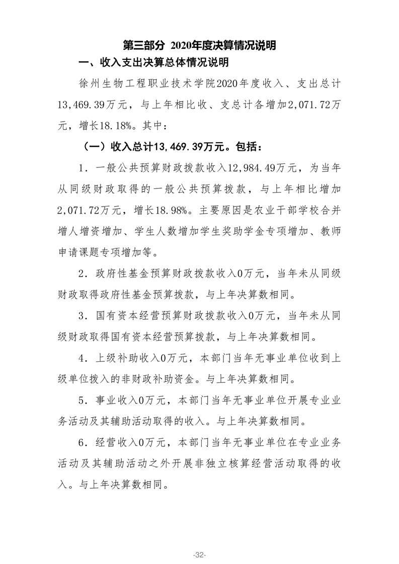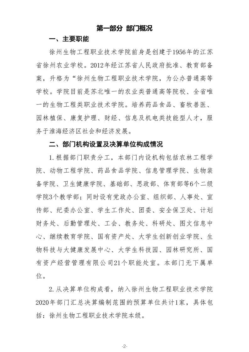 徐州生物工程职业技术学院2020年部门决算