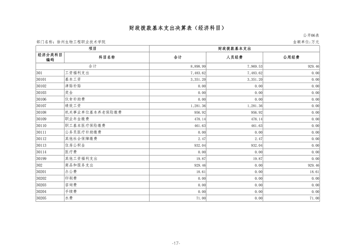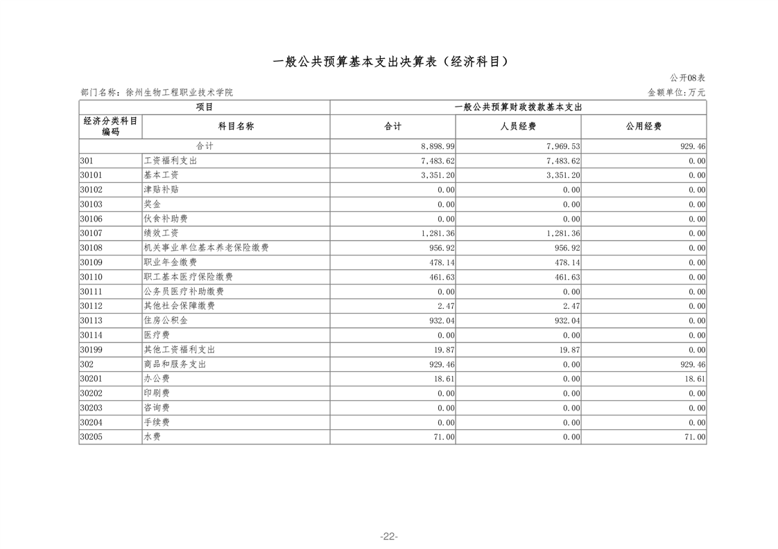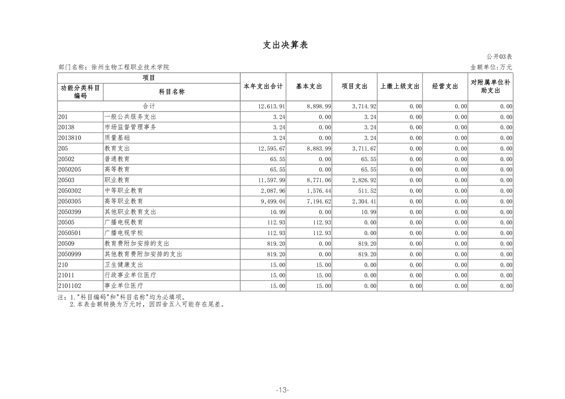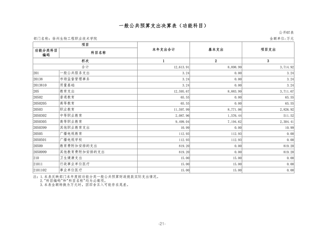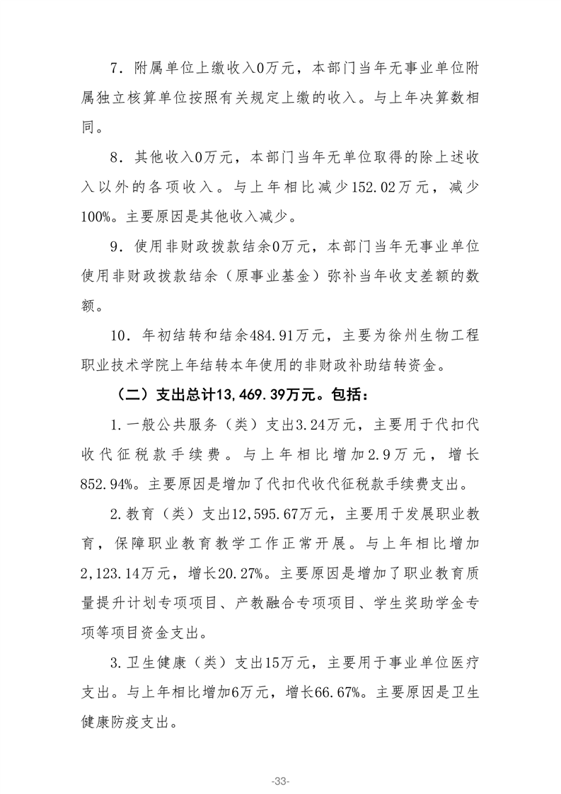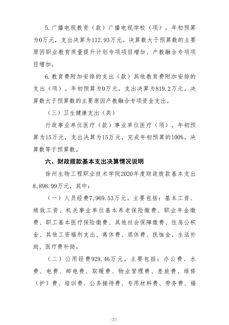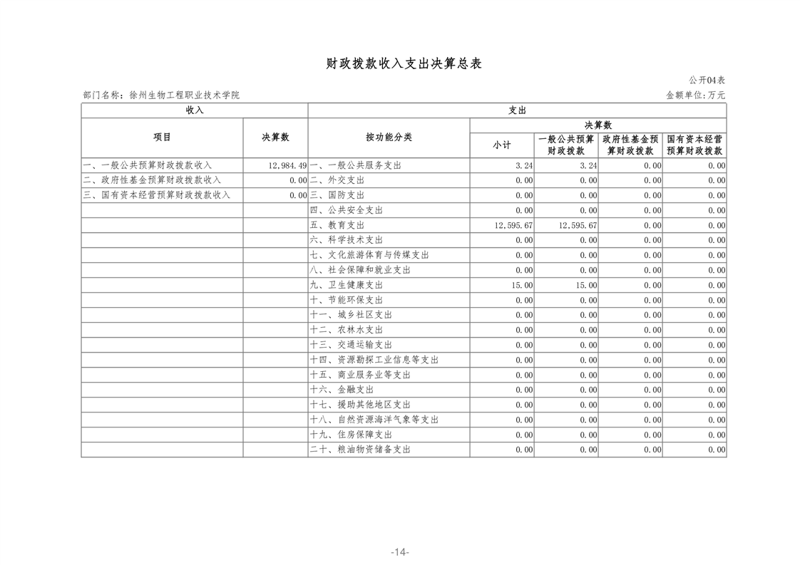 徐州生物工程职业技术学院2020年部门决算