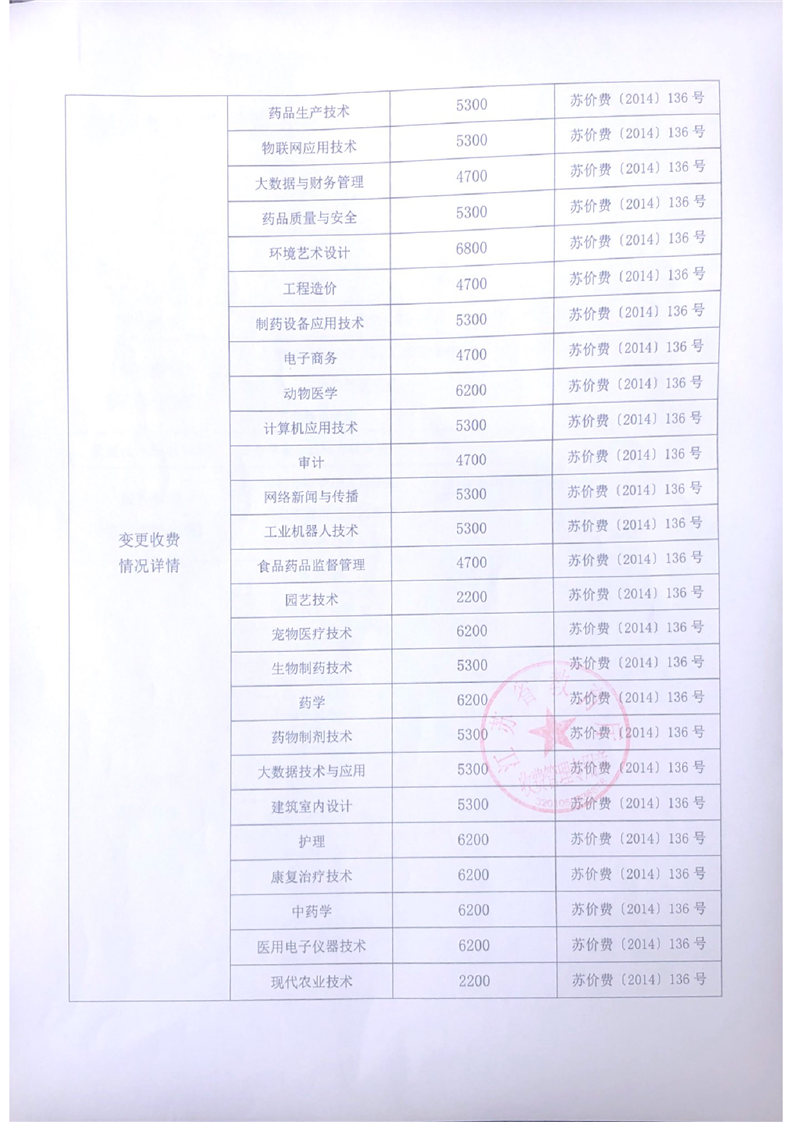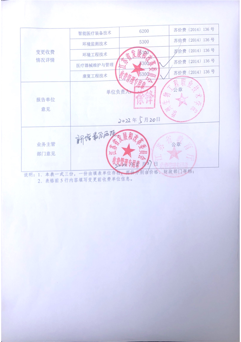 徐州生物工程职业技术学院日常收费情况变更报告表2022-05