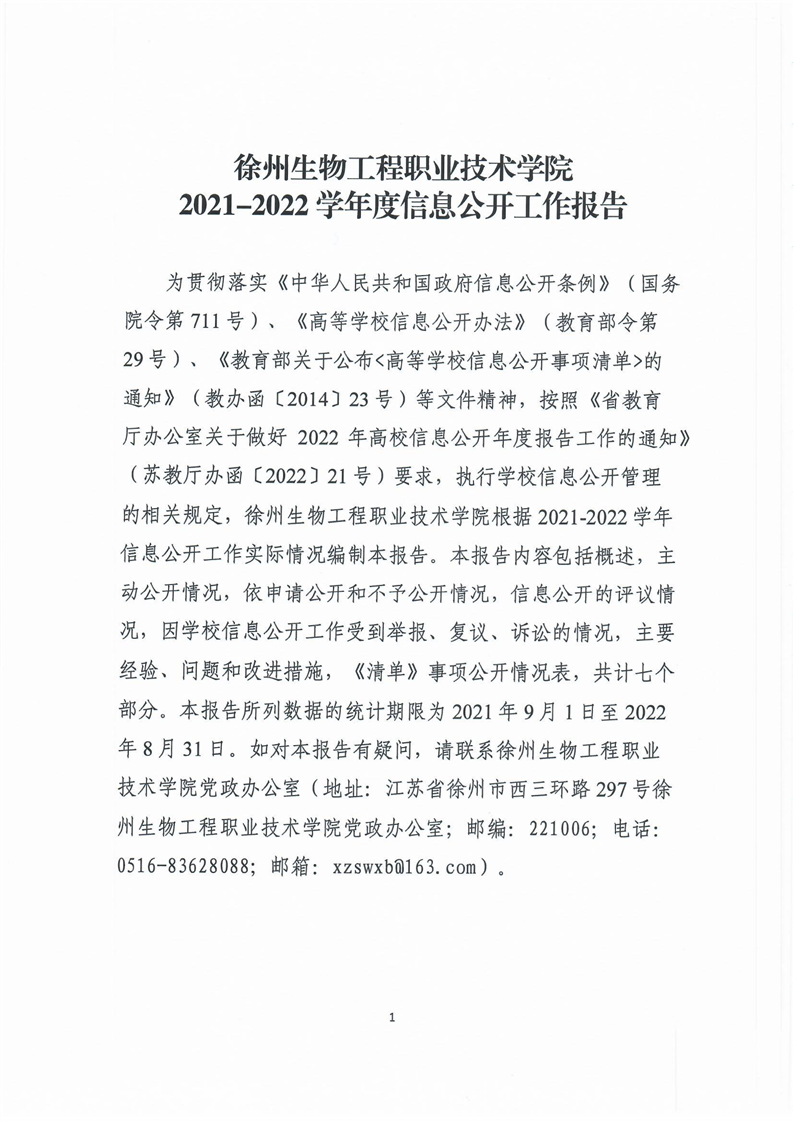 徐生院2021-2022学年度信息公开工作报告